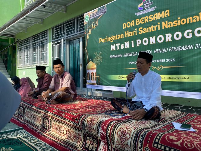 Ponorogo – Dalam rangka memperingati Hari Santri Nasional, MTsN 1 Ponorogo menyelenggarakan kegiatan Doa Bersama untuk Negeri yang dilaksanakan serentak oleh seluruh satuan pendidikan di bawah naungan Kementerian Agama Republik Indonesia. Kegiatan ini dilaksanakan pada hari Kamis, 16 Oktober 2025 …